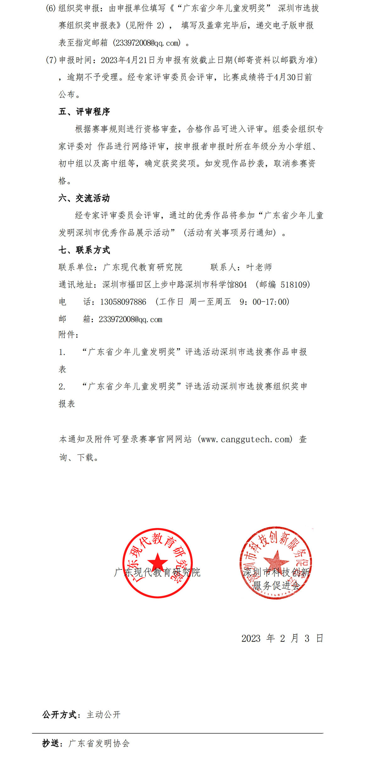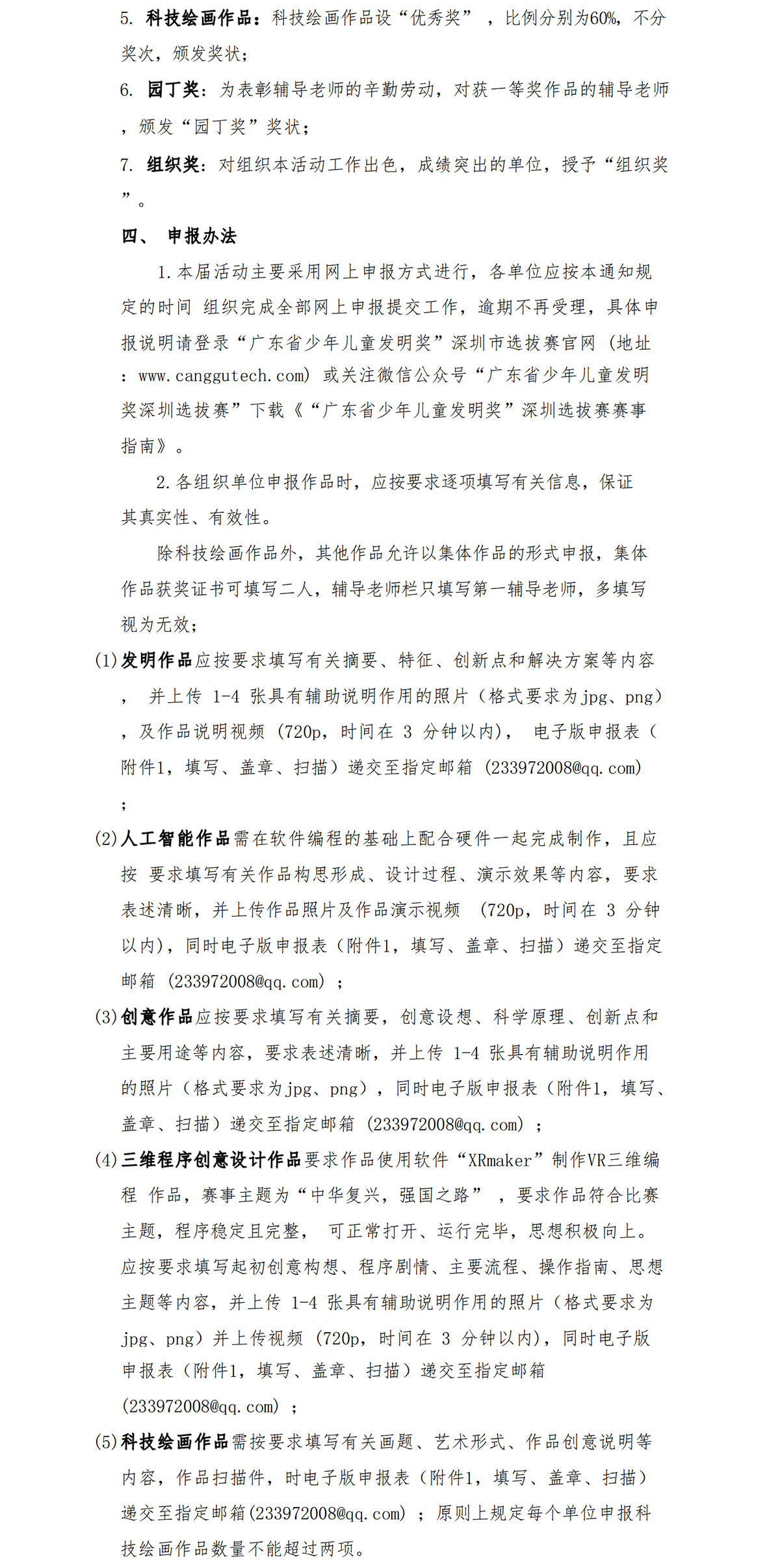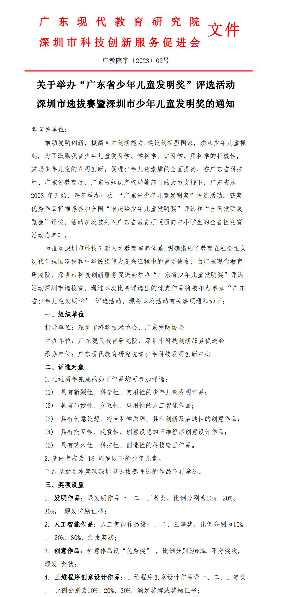 关于举办“⼴东省少年⼉童发明奖”评选活动 深圳市选拔赛暨深圳市少年⼉童发明奖的通知